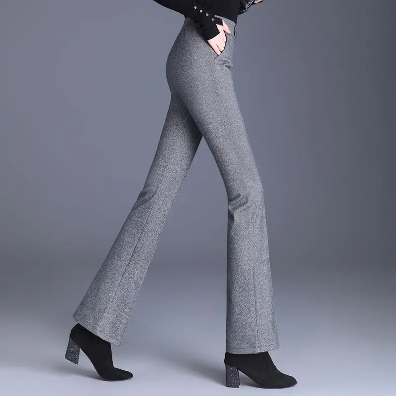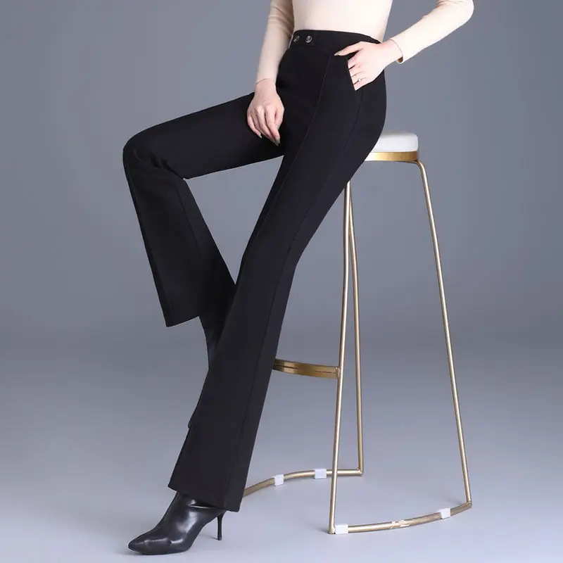 Elegant Flare Cut: Features a sophisticated bootcut silhouette that elongates the legs and pairs perfectly with heels or boots.