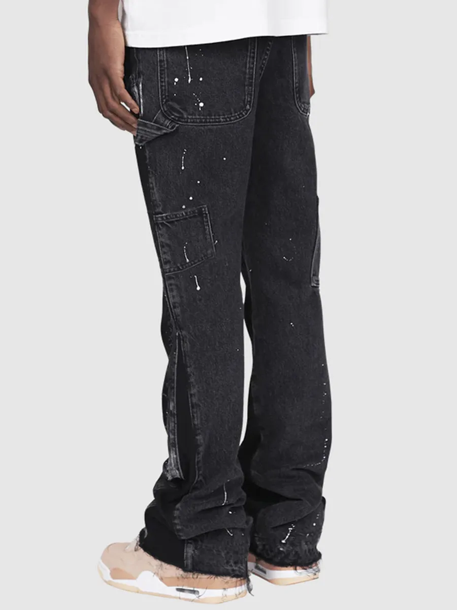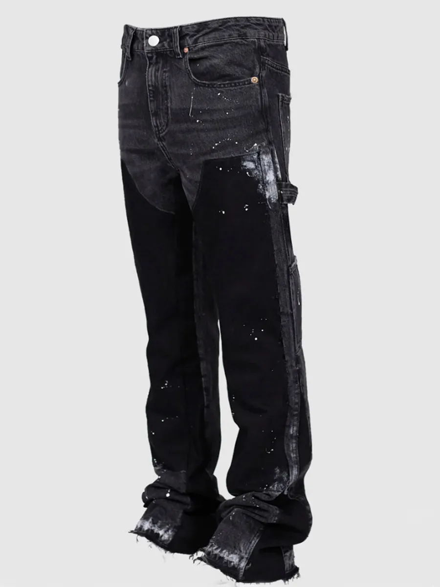 The standout feature is the deliberate white paint splatter detailing, giving each pair a custom, “lived-in” artisan feel that complements the grit of modern city fashion. With a comfortable straight-leg fit that gathers perfectly at the hem, these jeans offer a silhouette that is both contemporary and versatile. Whether styled with an oversized hoodie or a crisp leather jacket, these panelled jeans bring a high-fashion edge to your daily rotation.