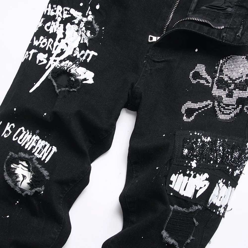 The meticulous distressing—including frayed knee slits and artistic paint splatters—gives them an authentic, lived-in feel right out of the box. Constructed with a slim-fit design, they offer a sharp look without sacrificing mobility. Whether you’re heading to a concert or just hitting the city streets, pair these jeans with a basic oversized tee or a leather jacket to complete your bold, high-contrast look. Durable, comfortable, and undeniably stylish, these jeans are the ultimate addition to a modern wardrobe.