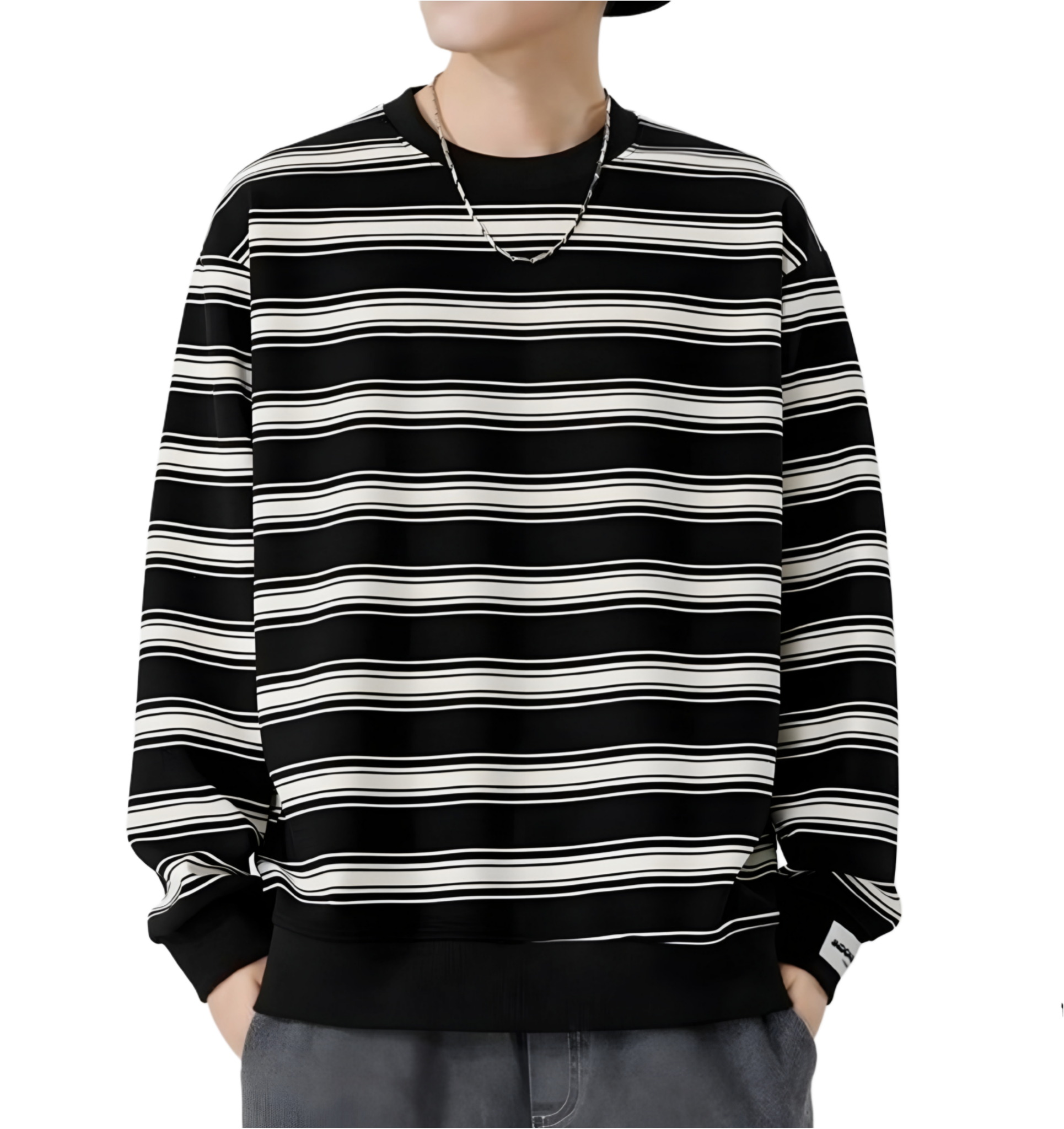 Master the art of effortless style with our Urban Striped Crewneck Sweatshirt. This pullover reimagines a classic nautical aesthetic with a modern, oversized fit that is essential for any streetwear enthusiast. The bold, varying horizontal stripes create a clean, structured look that transitions seamlessly from casual daytime outings to evening hangouts.
