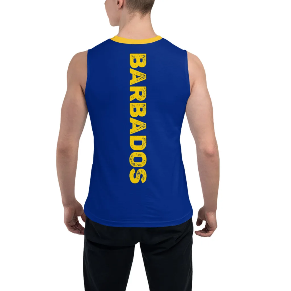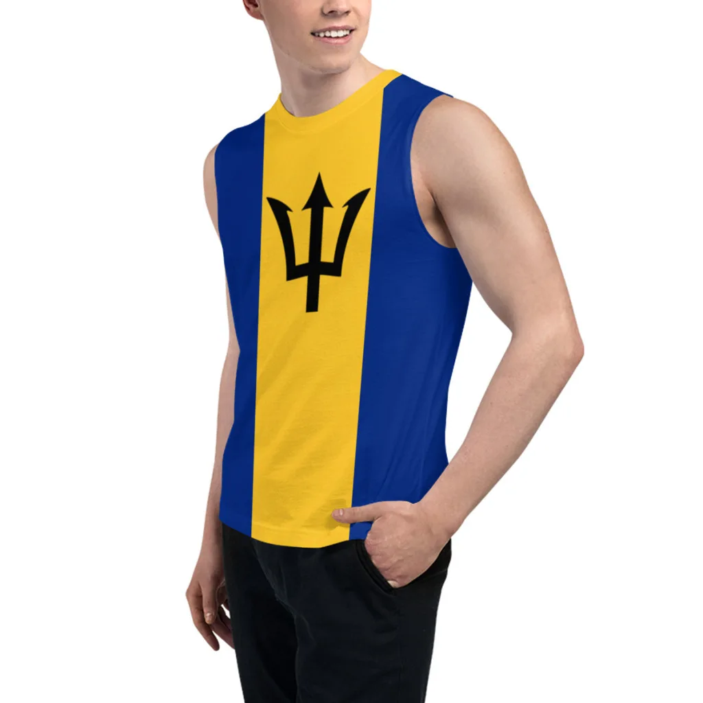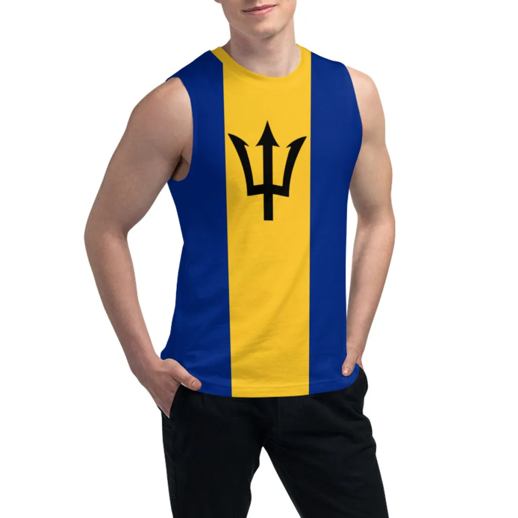 Show off your love for the “Gem of the Caribbean” with our Men’s Barbados Flag Sleeveless Tank Top. This isn’t just a shirt; it’s a statement of heritage and style. Featuring a bold, full-chest representation of the Barbadian flag—the ultra-marine blue representing the sea and sky, the gold for the sand, and the broken trident symbolizing independence—this tank top is a must-have for any proud Bajan or admirer of the island.This versatile piece pairs effortlessly with black joggers for a sporty look, or with denim shorts for a relaxed beach vibe. It’s the perfect attire for “Lime” time with friends, Caribbean festivals, or simply staying cool during the summer months.Represent the 246 in style. Add the Barbados Flag Heritage Tank Top to your collection and carry the spirit of the island wherever you go!We use advanced sublimation printing technology to ensure the flag’s colors stay as bright as the Caribbean sun. Unlike traditional screen prints, this method fuses the ink directly into the fibers, meaning the design won’t fade or peel over time. The result is a smooth, professional finish that feels as good as it looks.